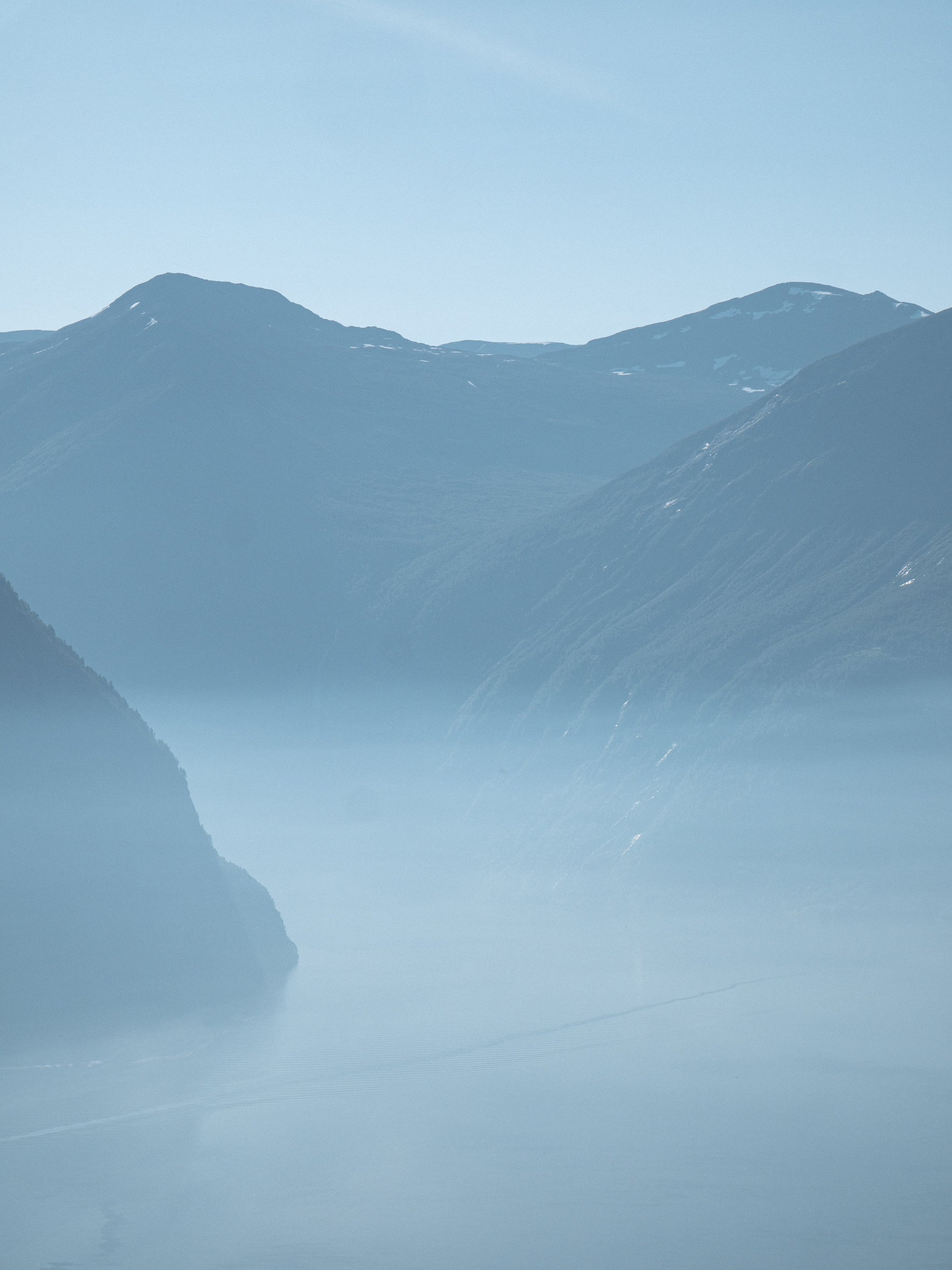 Обои: горный пейзаж, туман, голубой - 2048x2732