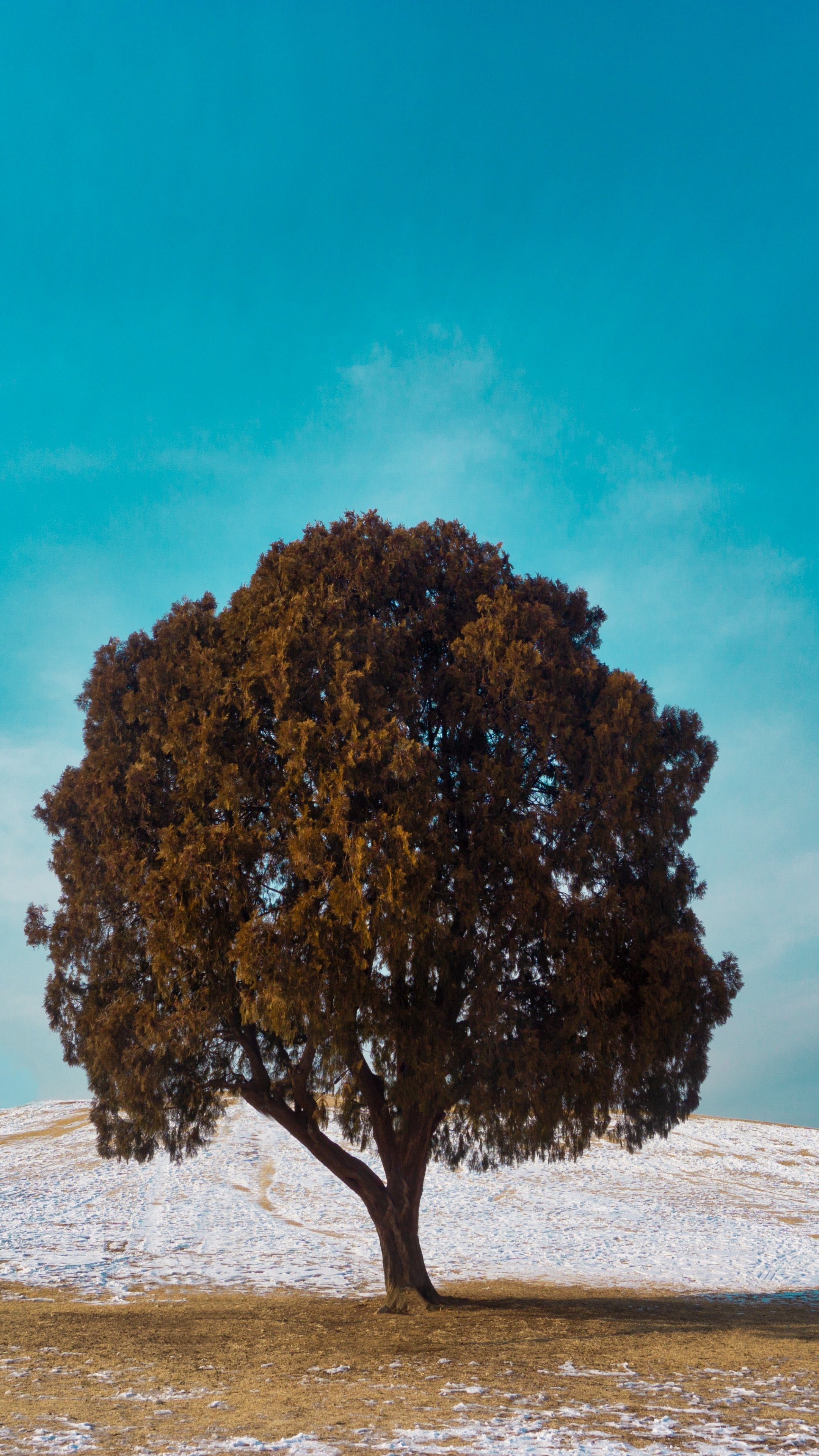 Обои: одинокое дерево, дуб, пейзаж - 2160x3840