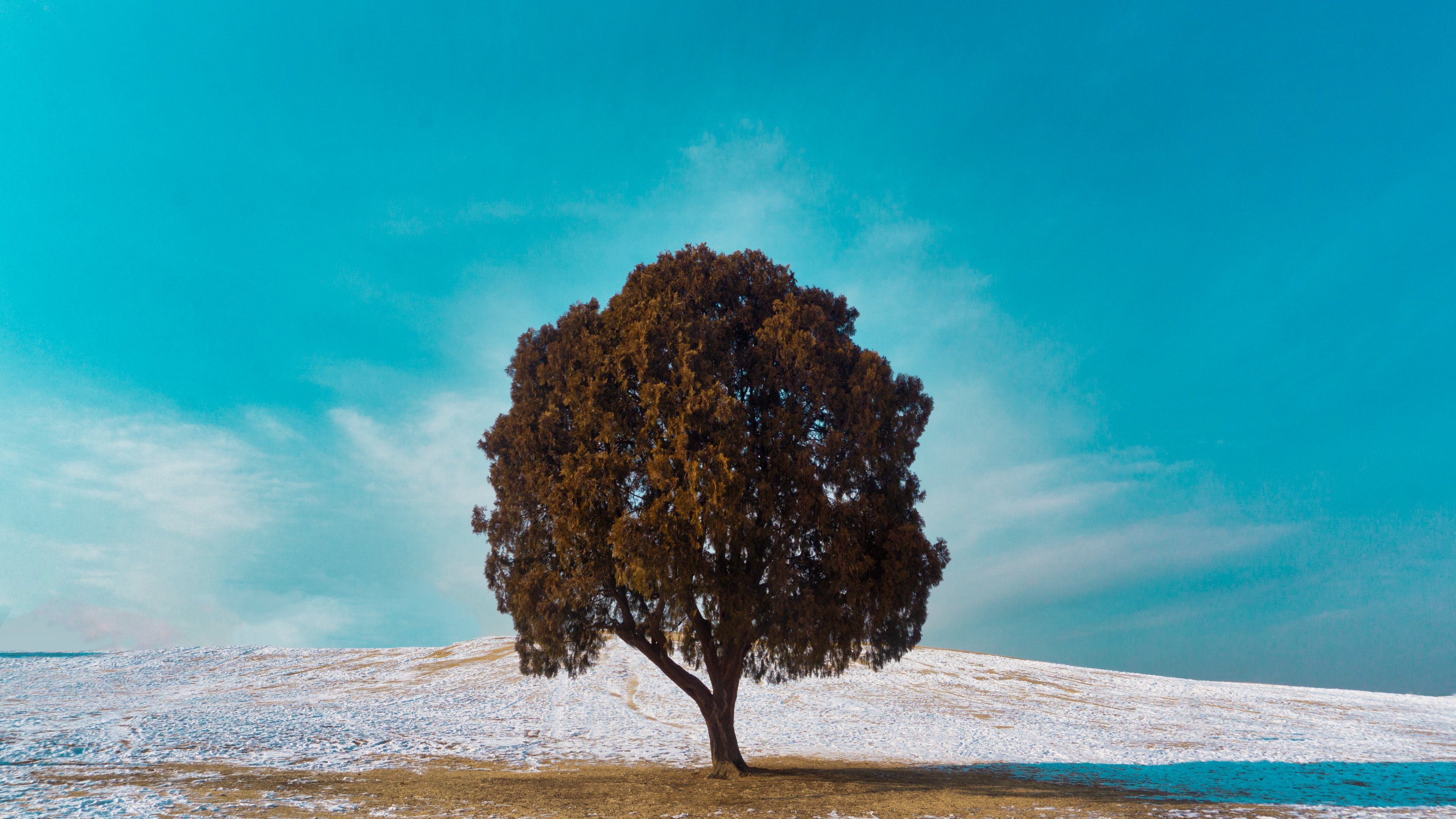 Обои: одинокое дерево, дуб, пейзаж - 3840x2160