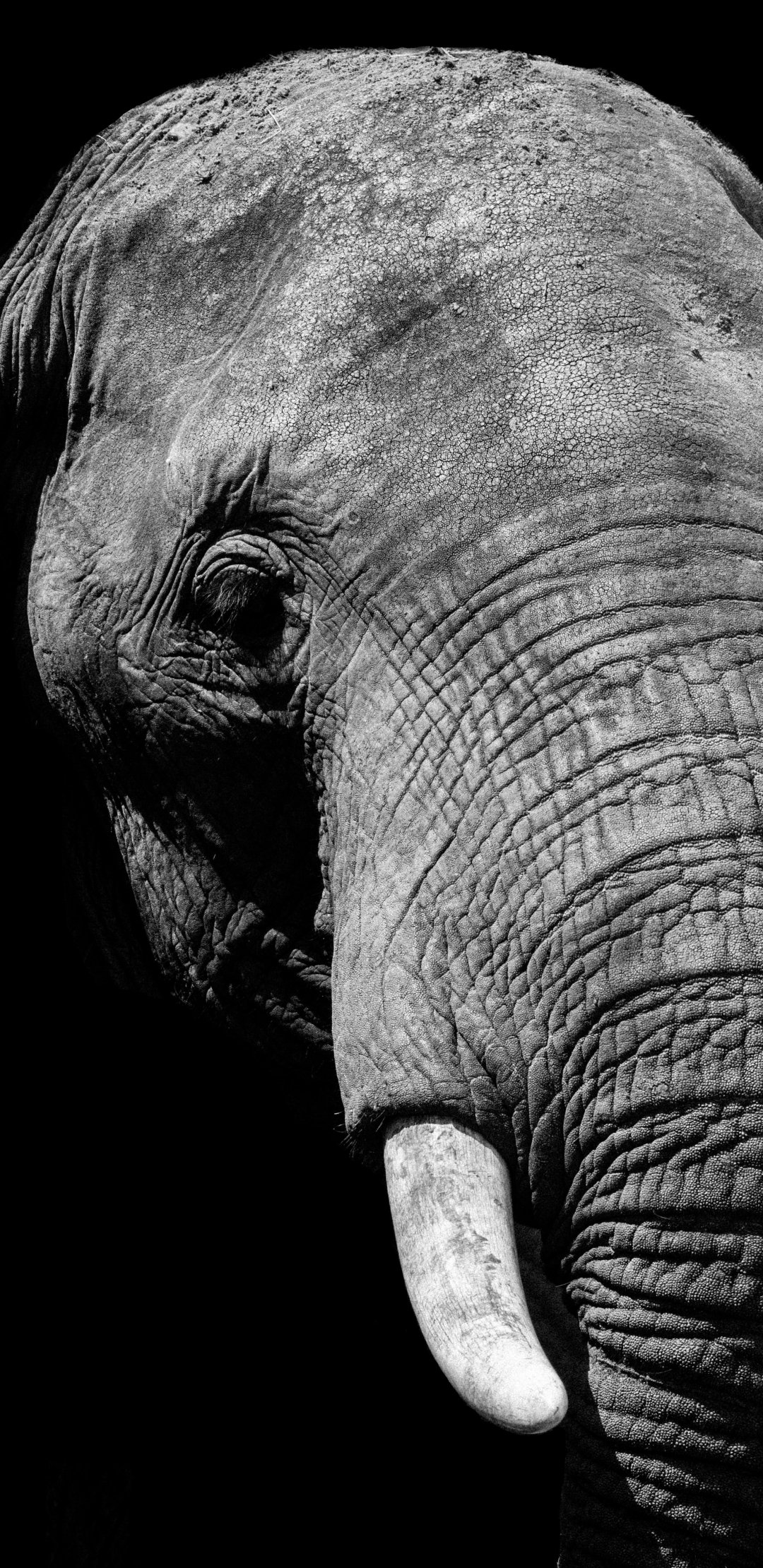 Обои: слон, черное и белое, бивни - 1080x2220