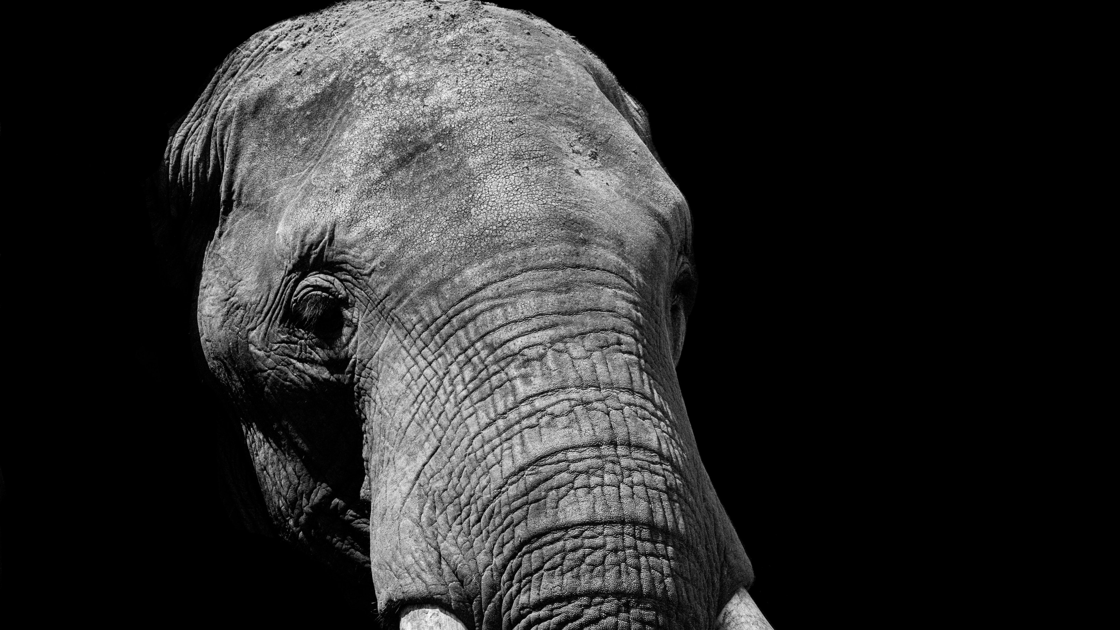 Обои: слон, черное и белое, бивни - 3840x2160