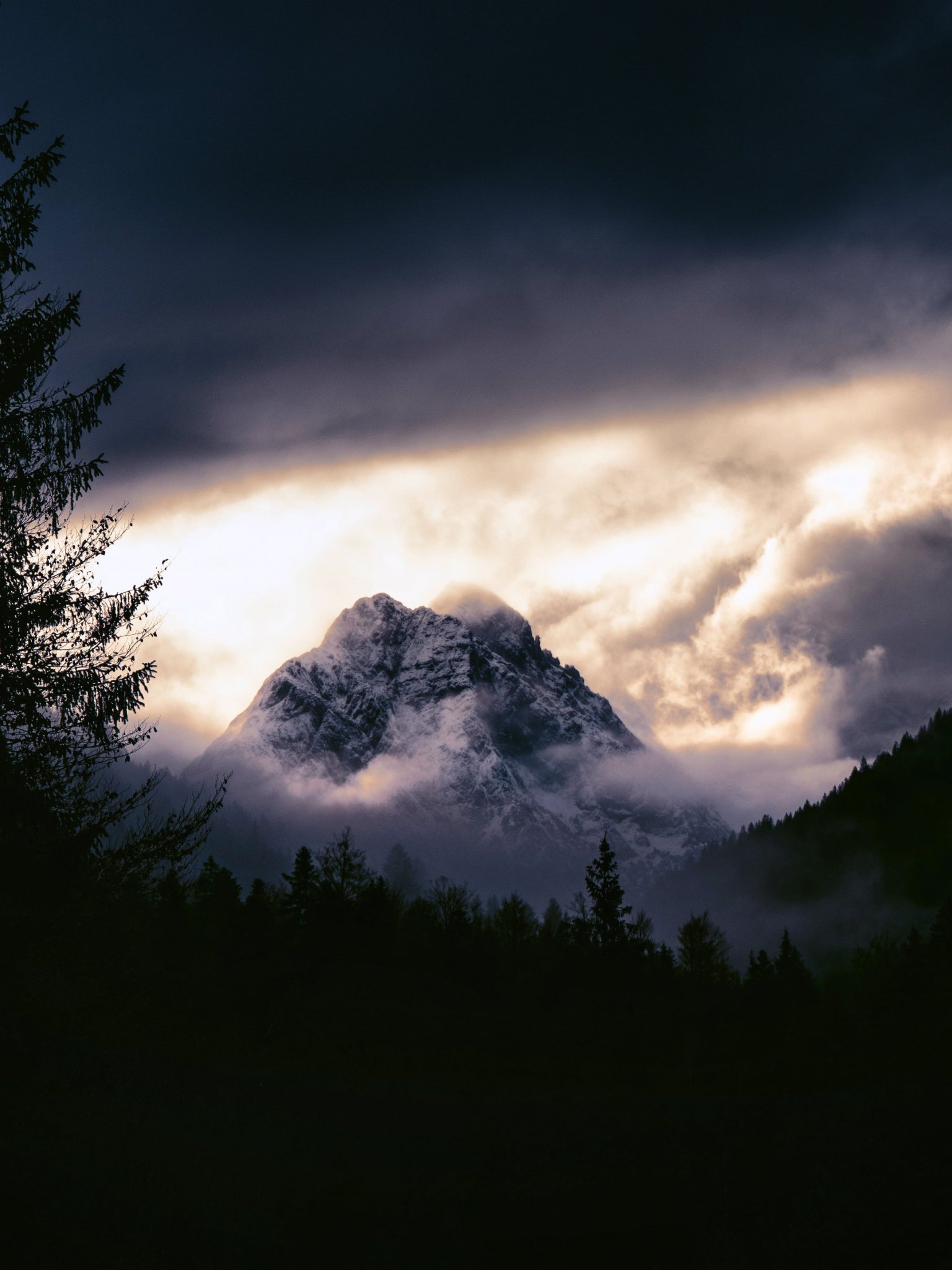 Обои: горный пейзаж, мрачный, ночь - 1536x2048