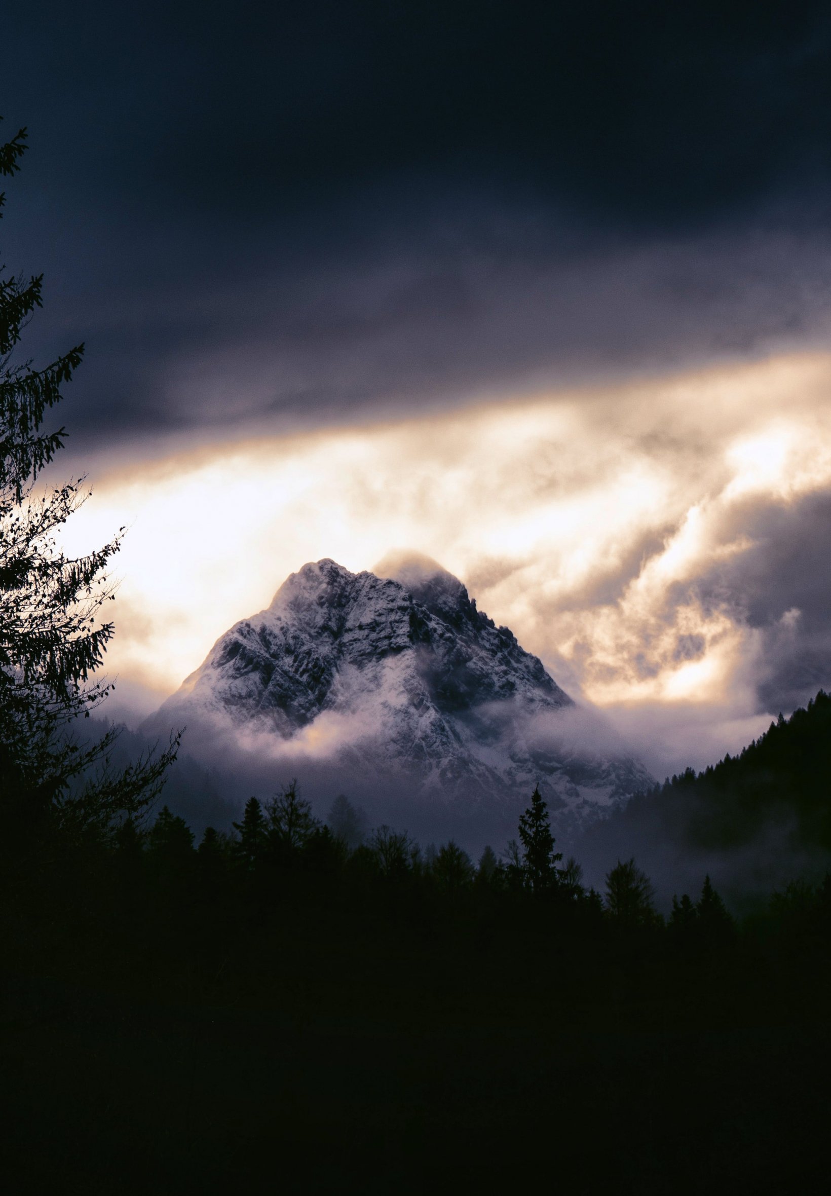 Обои: горный пейзаж, мрачный, ночь - 1640x2360