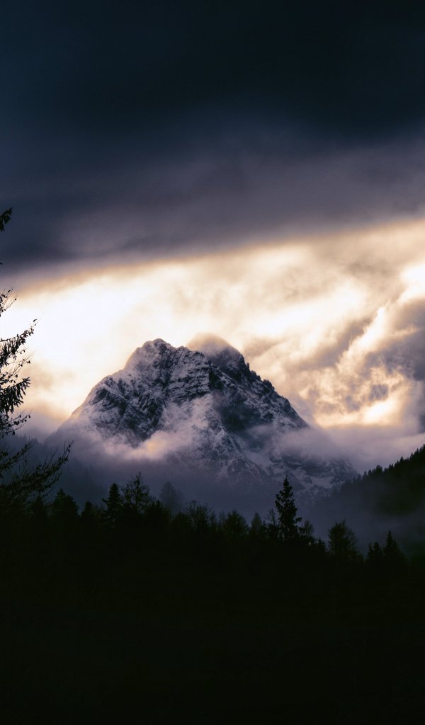 Обои: горный пейзаж, мрачный, ночь - 600x1024