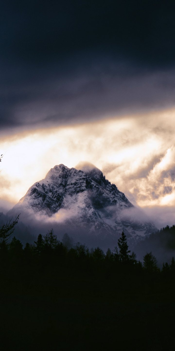 Обои: горный пейзаж, мрачный, ночь - 720x1440