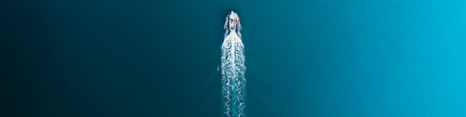 Обои: лазурное море, лодка, вид сверху - 1590x400