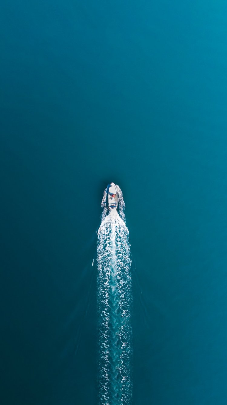 Обои: лазурное море, лодка, вид сверху - 750x1334