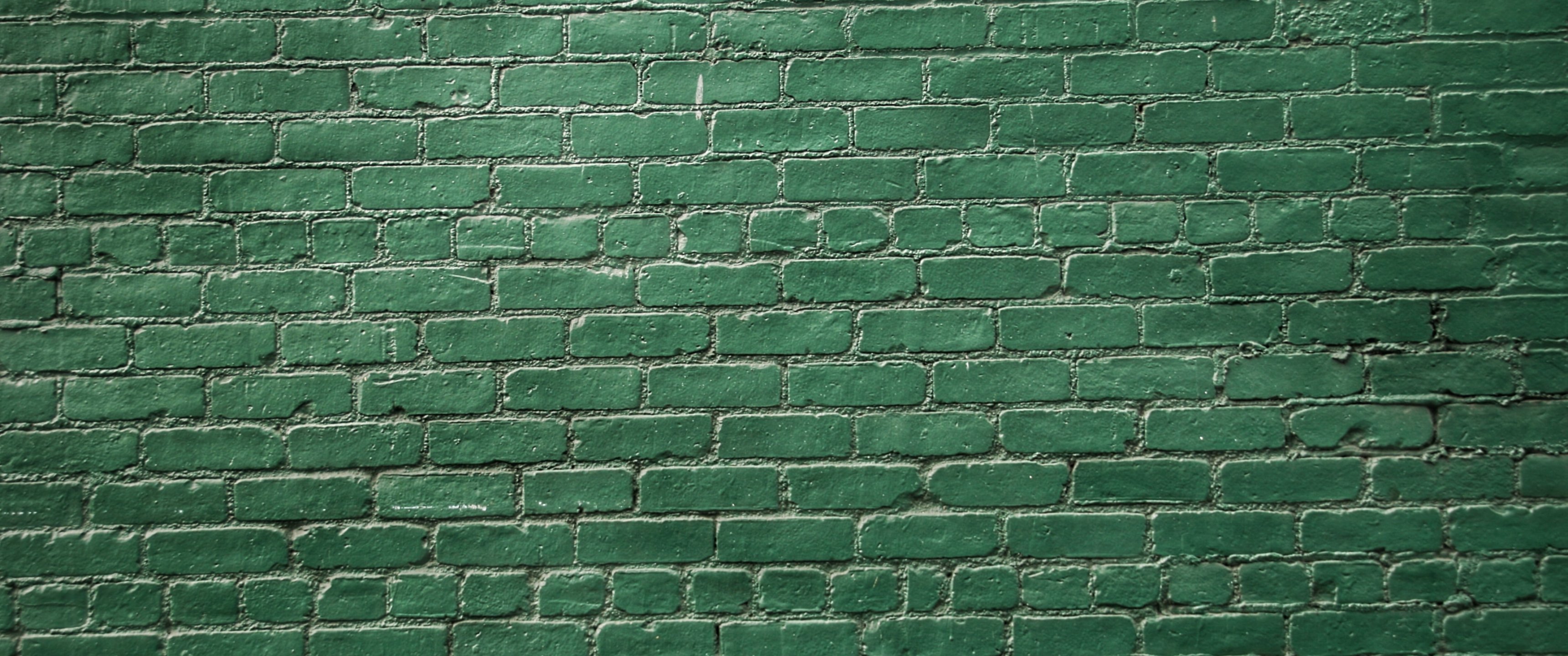 Обои: кирпичная стена, стена, зеленые обои - 3440x1440
