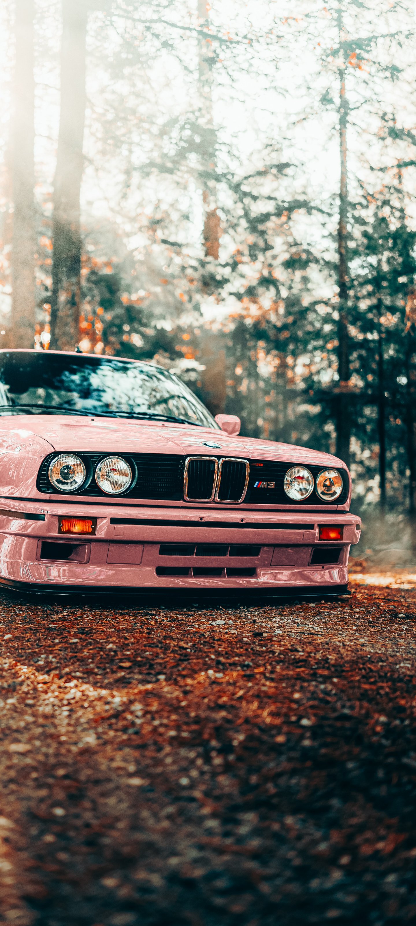 Обои: розовый BMW E30, классический автомобиль - 1440x3200