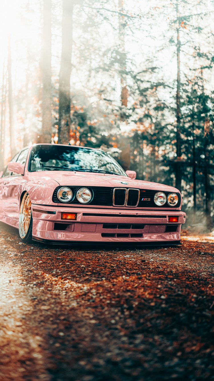 Обои: розовый BMW E30, классический автомобиль - 750x1334