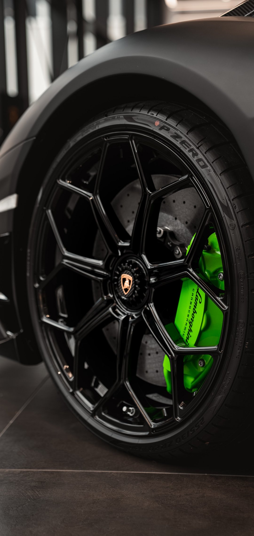Обои: колесо Lamborghini, черный, спортивная машина - 1080x2280