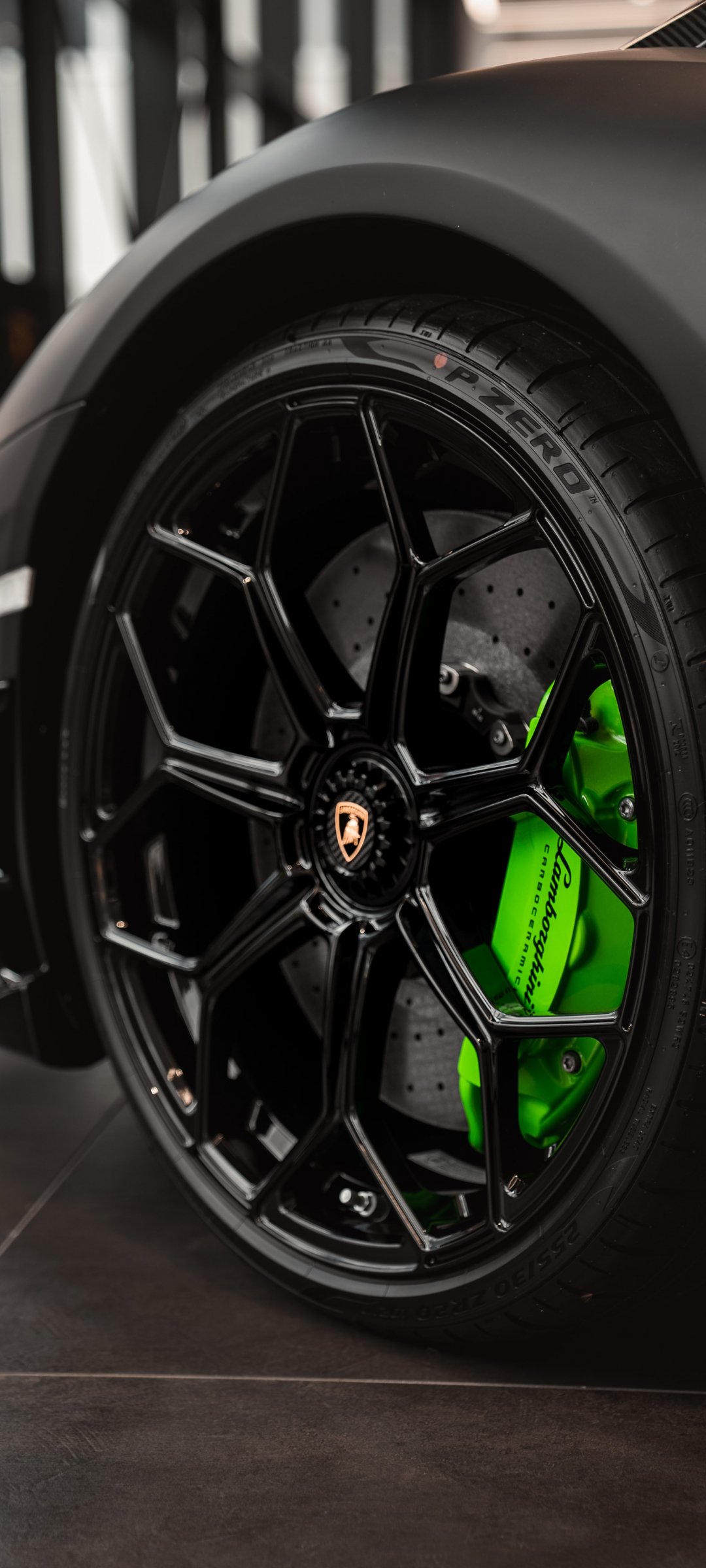 Обои: колесо Lamborghini, черный, спортивная машина - 1080x2400