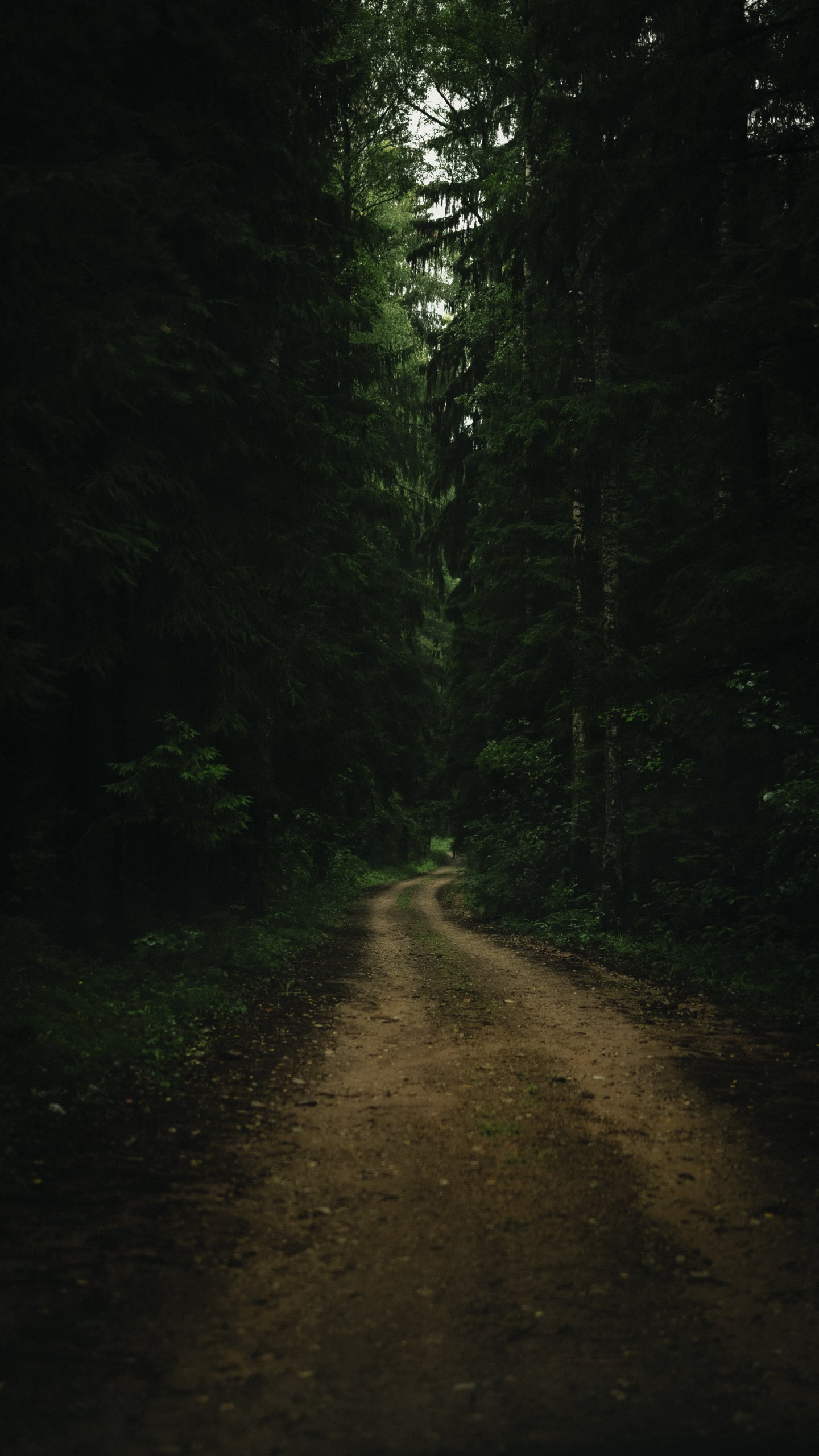 Обои: тропинка в лесу, зеленый, мрачный - 1440x2560
