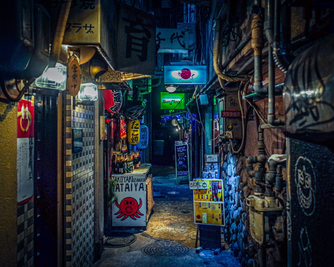 Обои: ночной город, переулок, Япония - 1280x1024