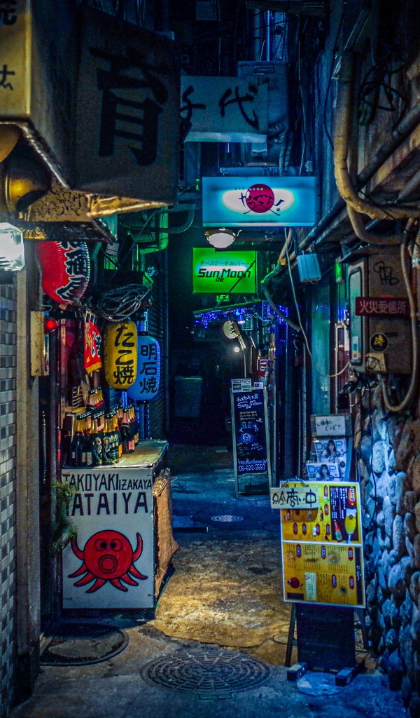 Обои: ночной город, переулок, Япония - 600x1024