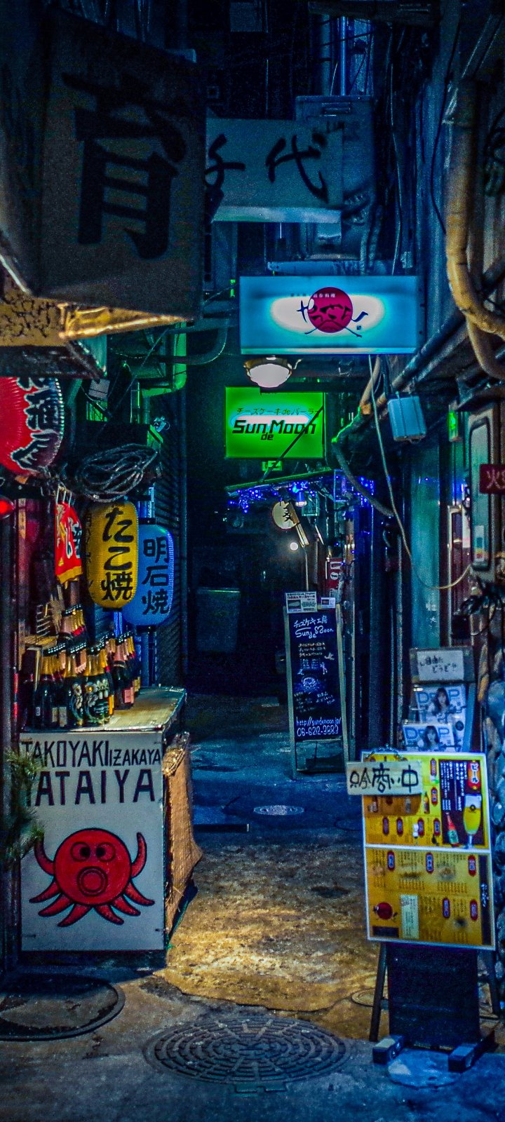 Обои: ночной город, переулок, Япония - 720x1600