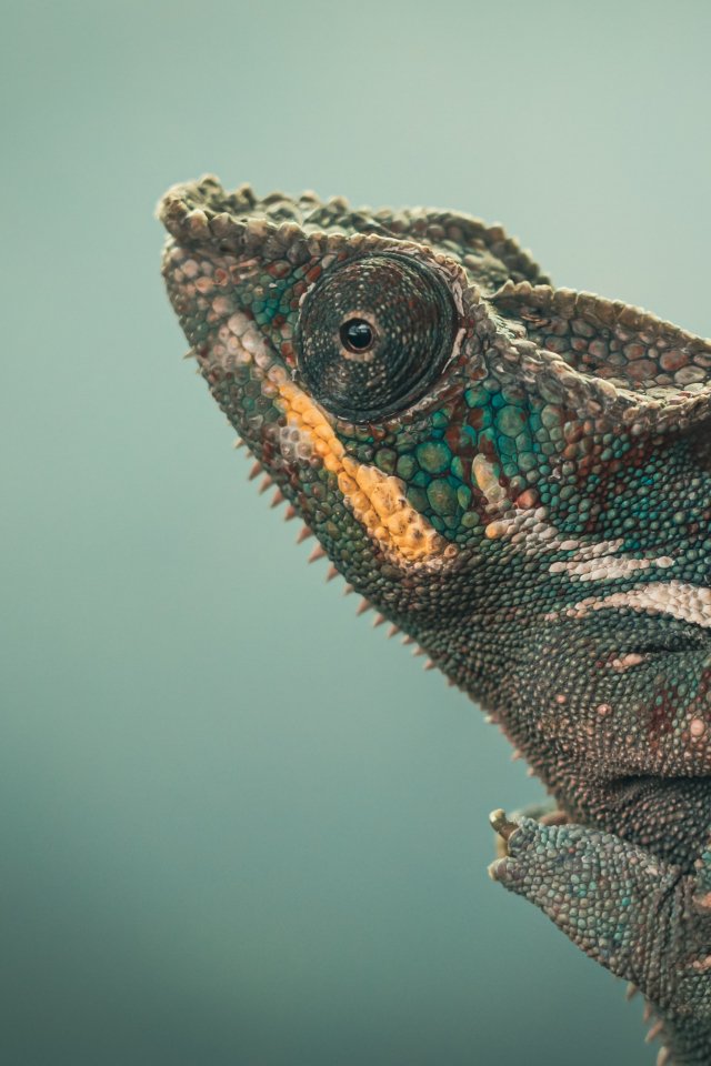 Обои: хамелеон, зеленый, дикая природа - 640x960