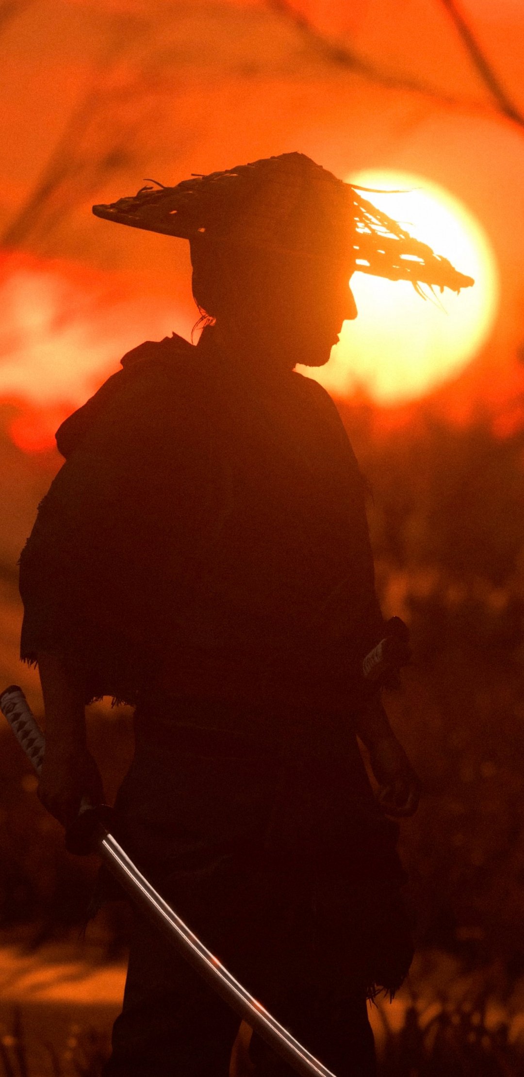 Обои: самурай, силуэт, солнечный свет - 1080x2220