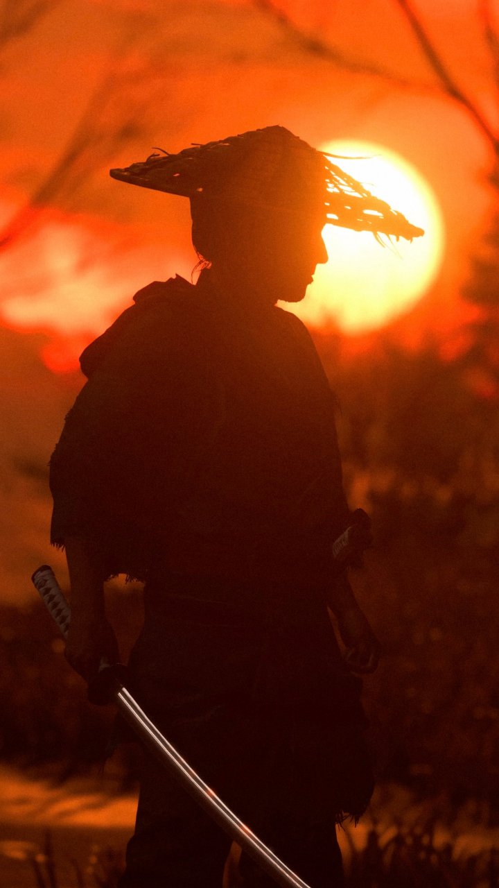 Обои: самурай, силуэт, солнечный свет - 720x1280