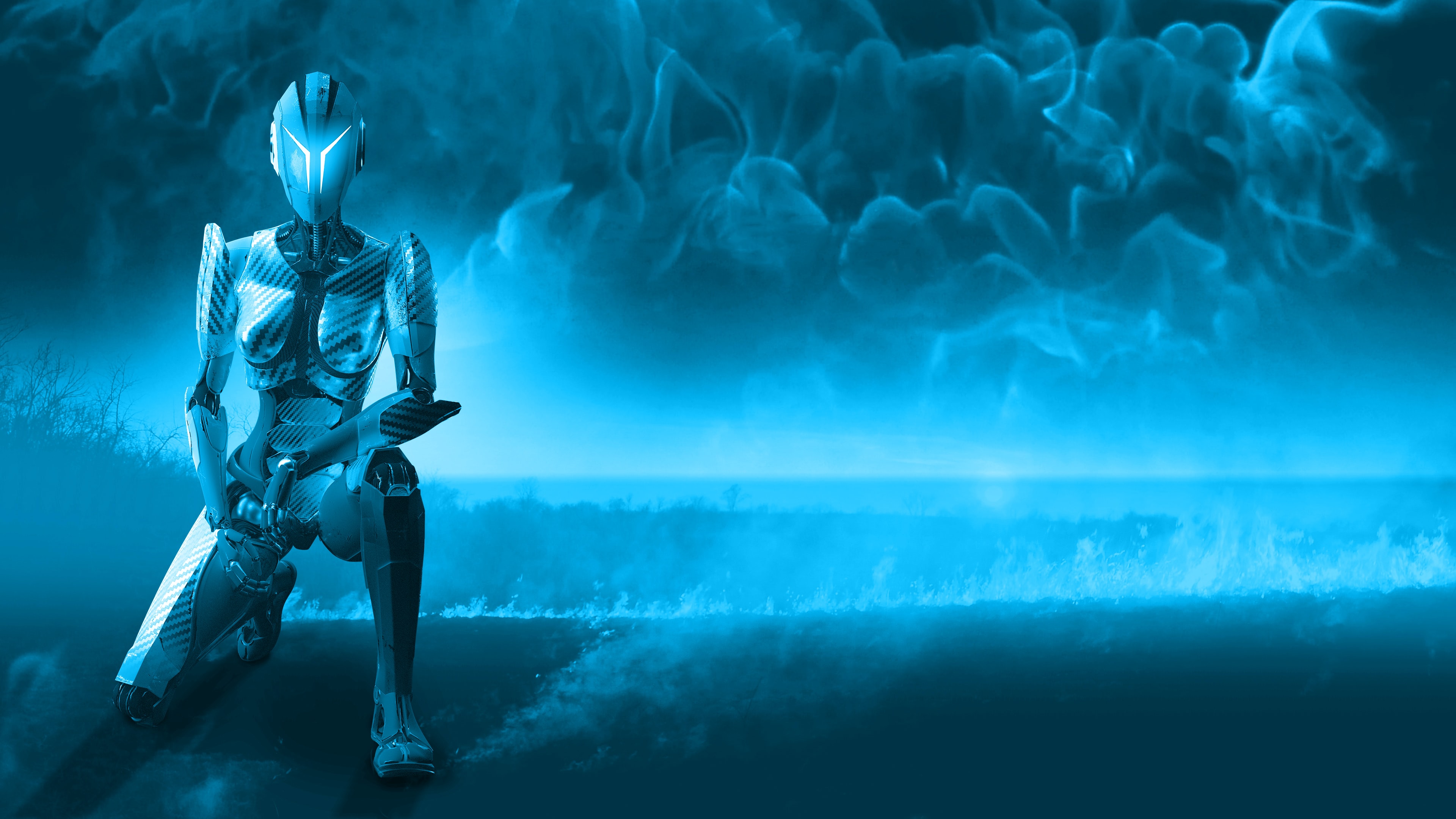 Обои: 3D, робот, синий - 3840x2160