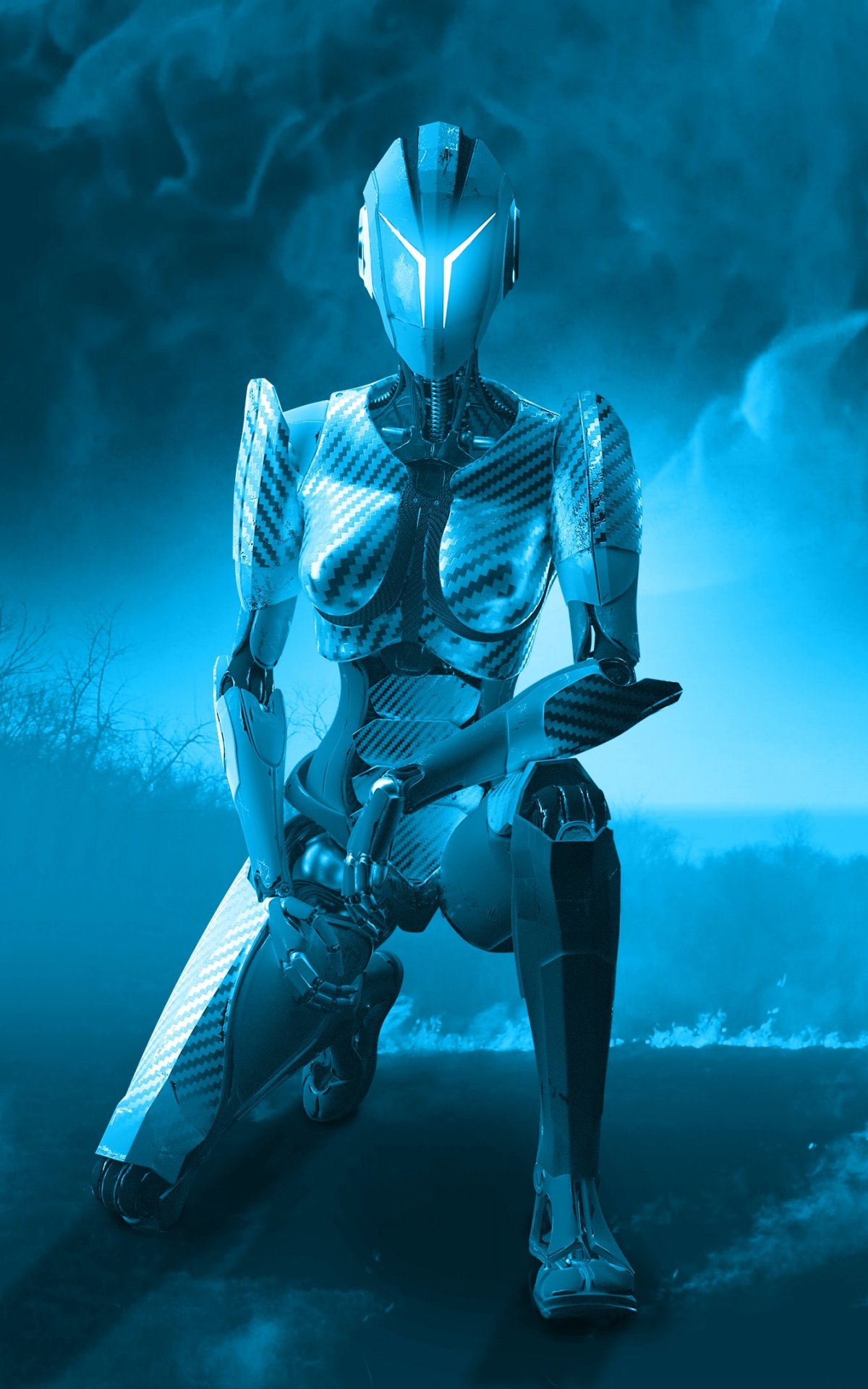 Обои: 3D, робот, синий - 1200x1920
