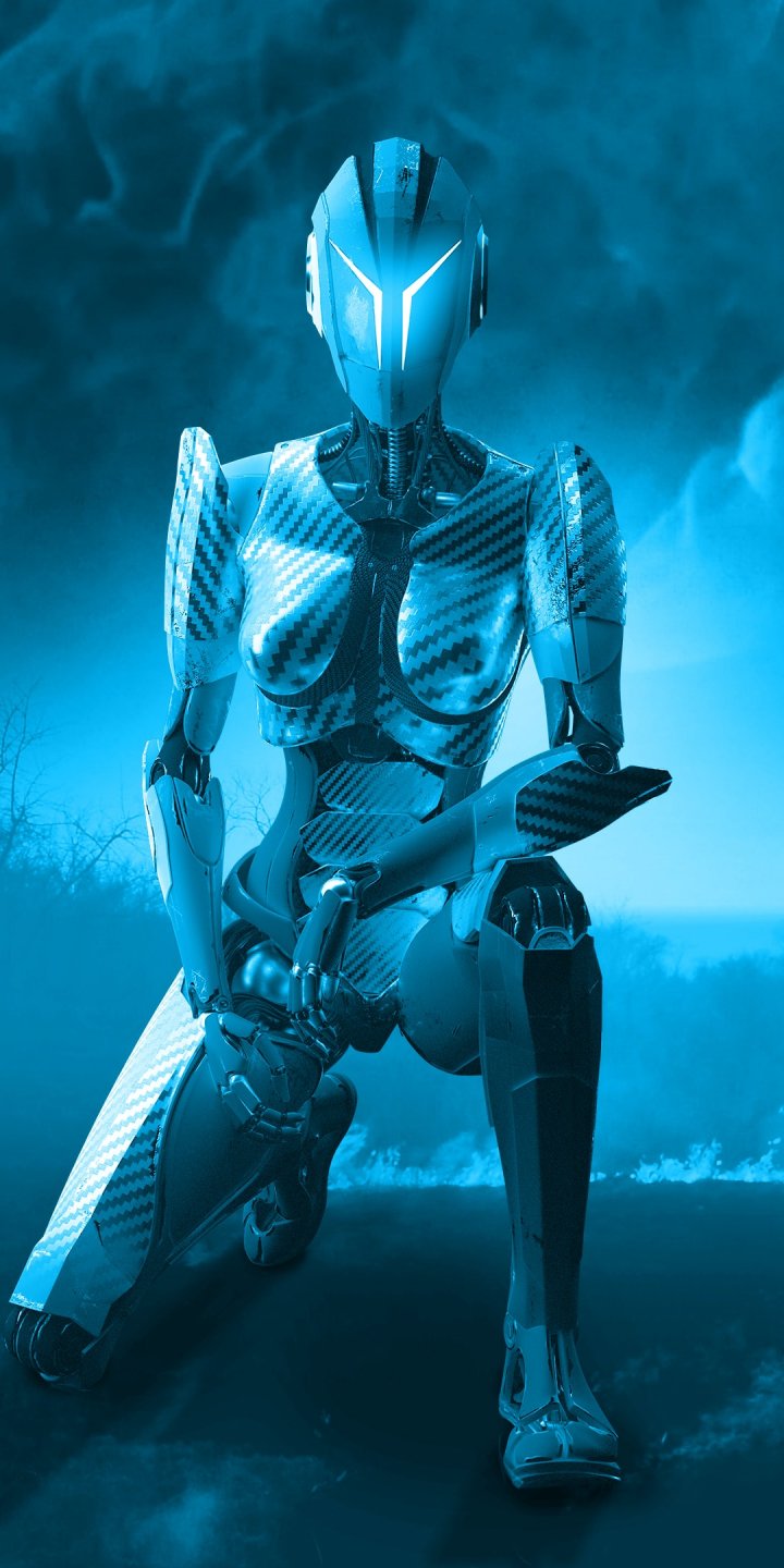 Обои: 3D, робот, синий - 720x1440