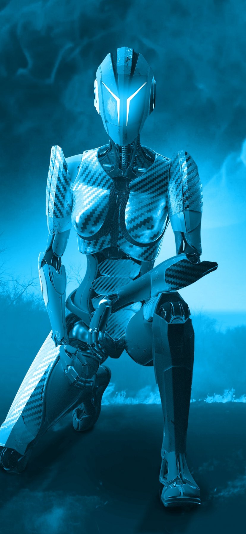 Обои: 3D, робот, синий - 828x1792