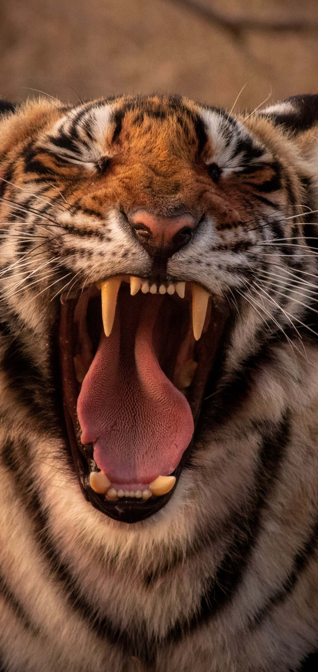 Обои: тигр, оскал, клыки - 1080x2280