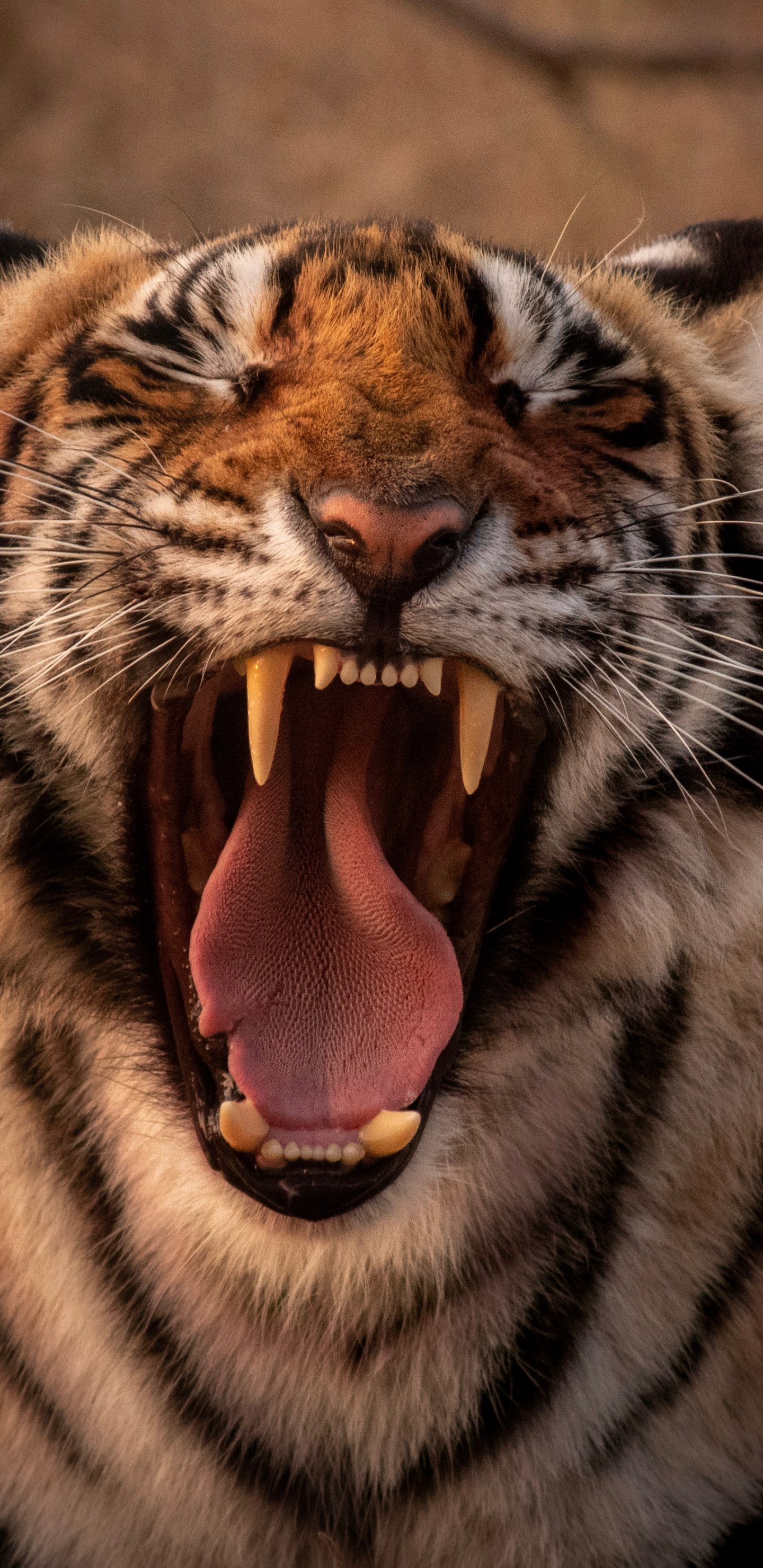 Обои: тигр, оскал, клыки - 1440x2960