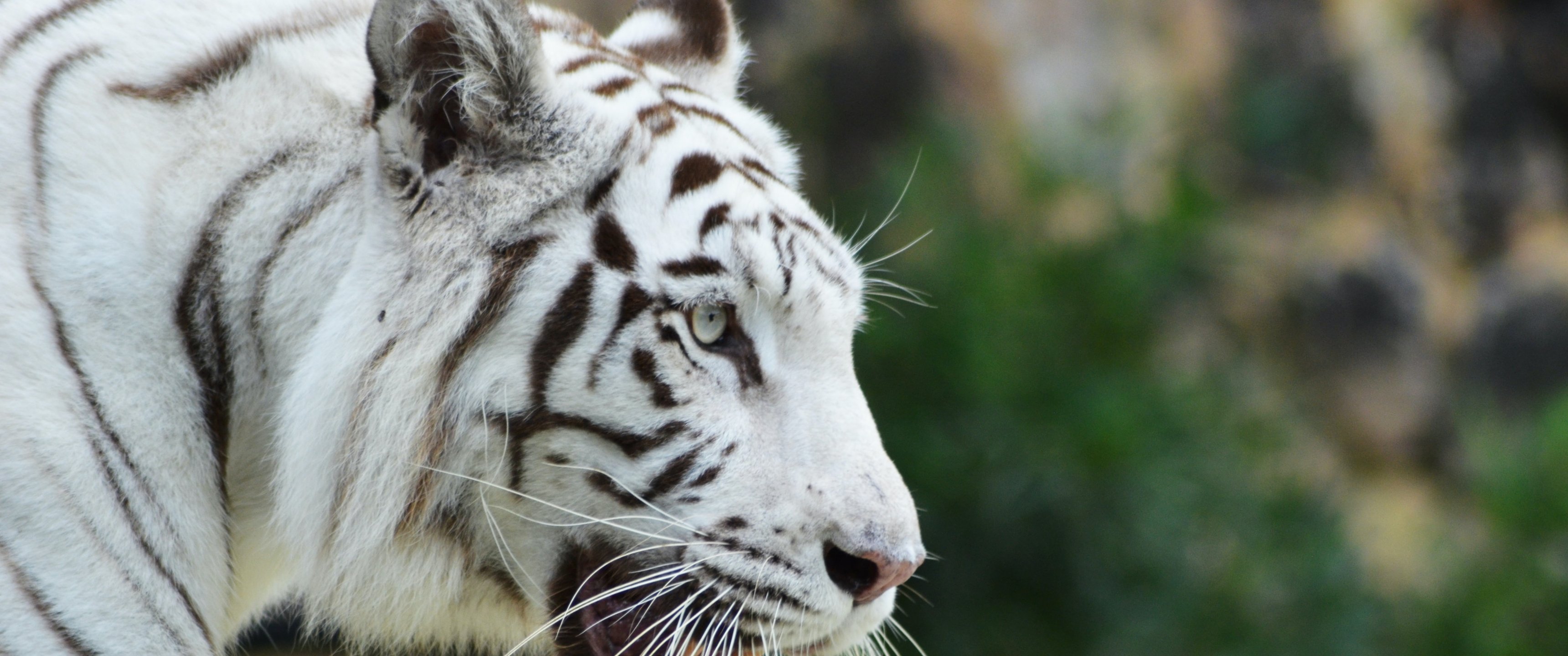 Обои: белый тигр, хищник, дикая природа - 3440x1440