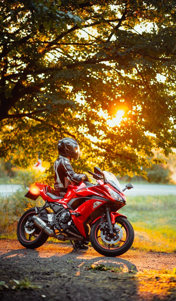 Обои: байкер, солнечный свет - 600x1024
