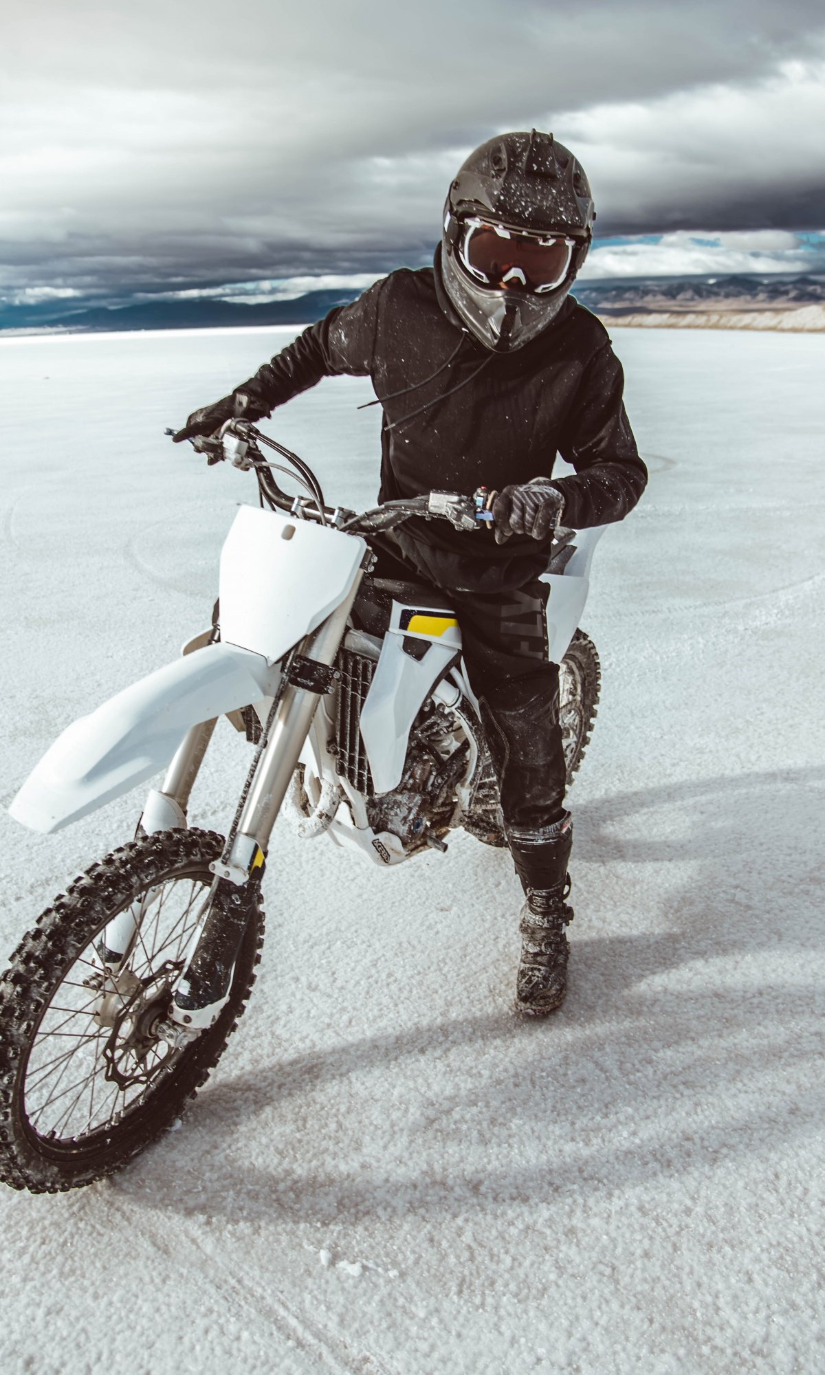 Обои: мотоциклист, солончаки - 1200x2000