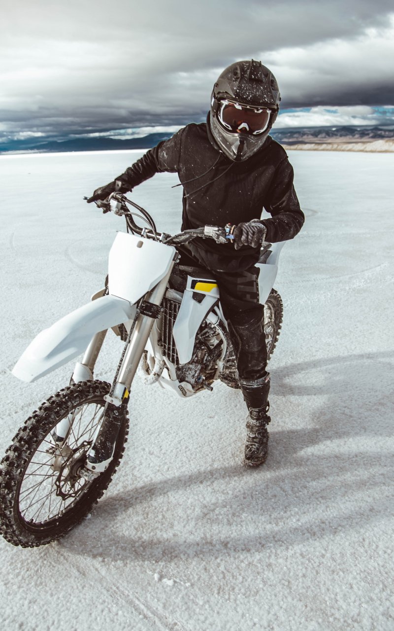 Обои: мотоциклист, солончаки - 800x1280