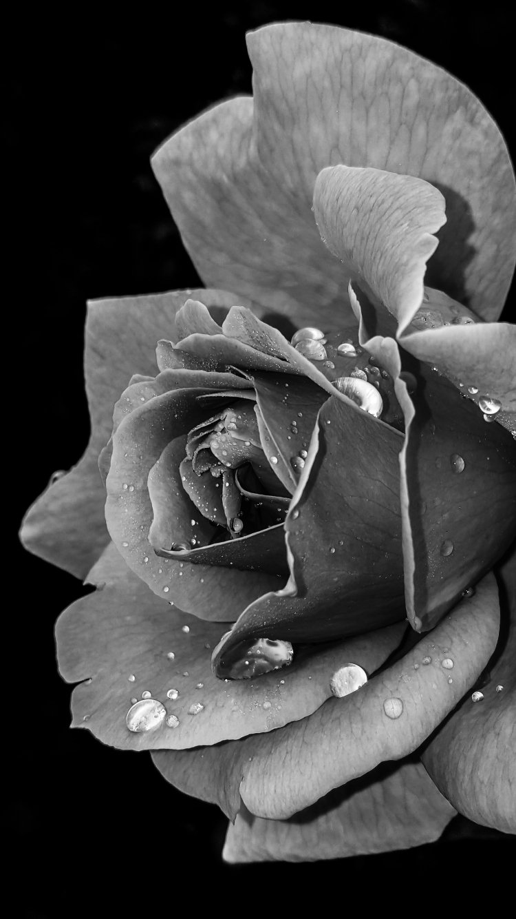 Обои: роза, черное и белое - 750x1334