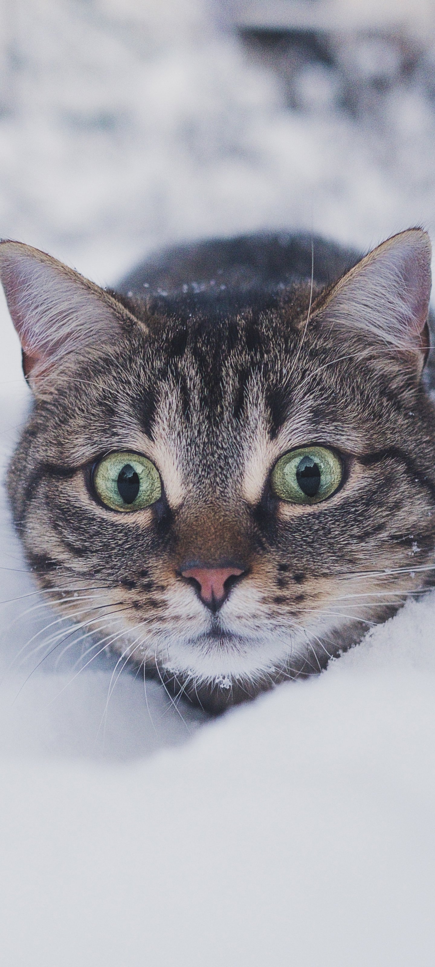 Обои: кот, снег, зима - 1440x3200
