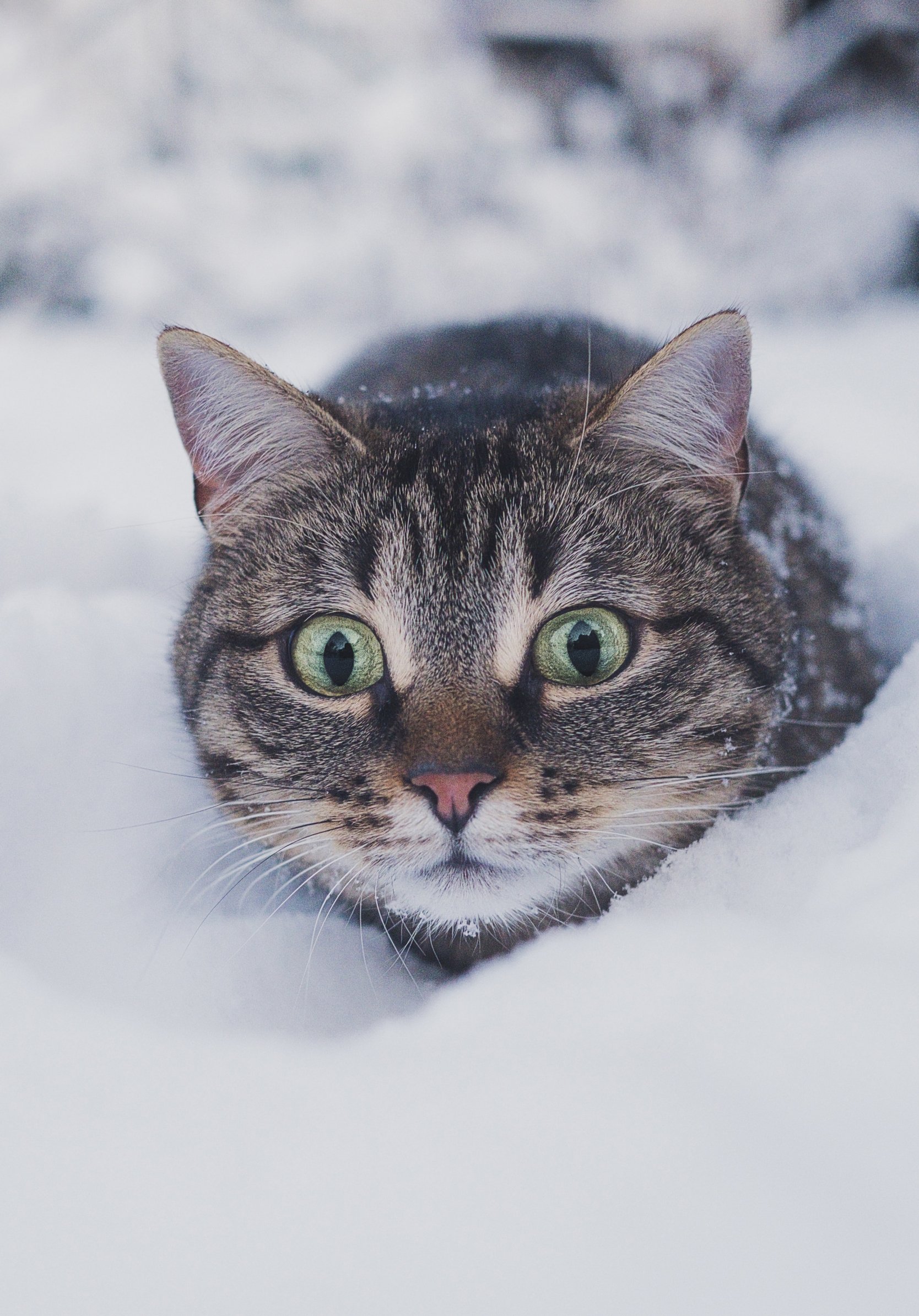 Обои: кот, снег, зима - 1668x2388