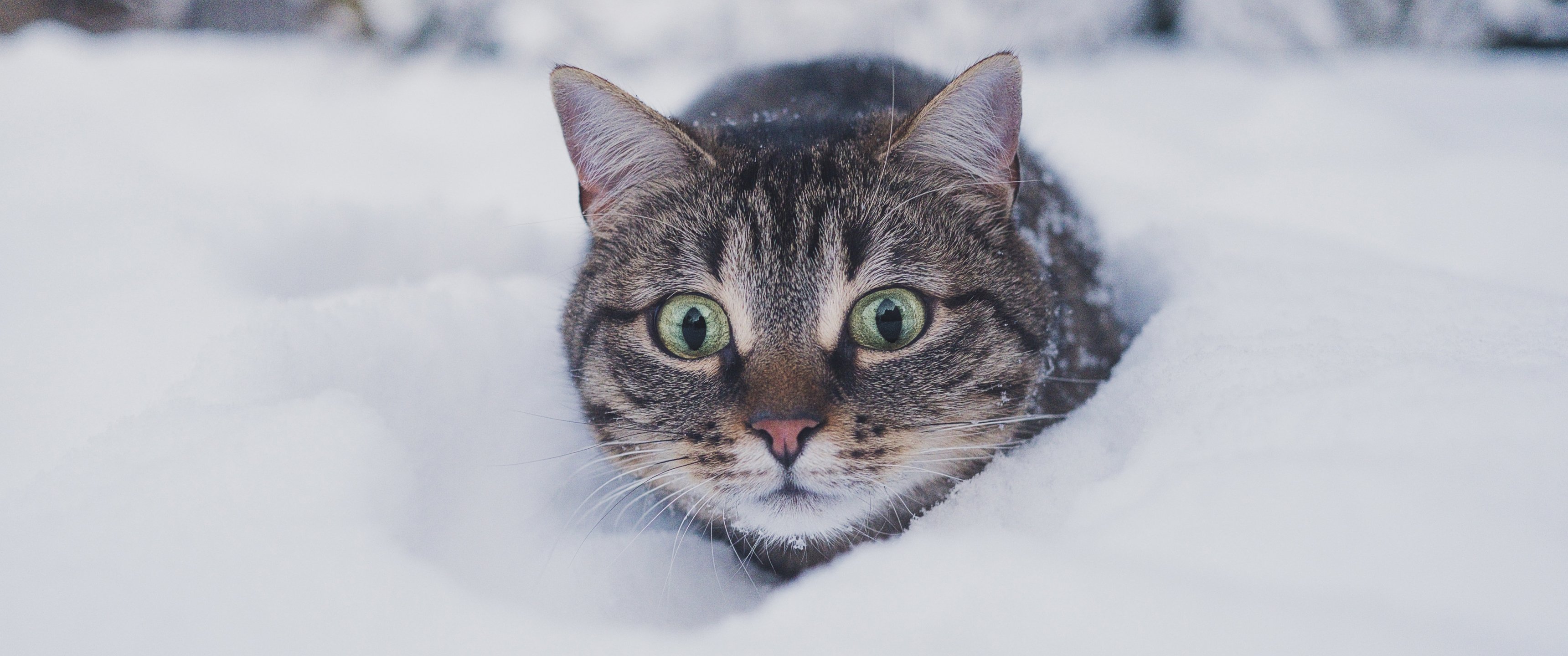 Обои: кот, снег, зима - 3440x1440