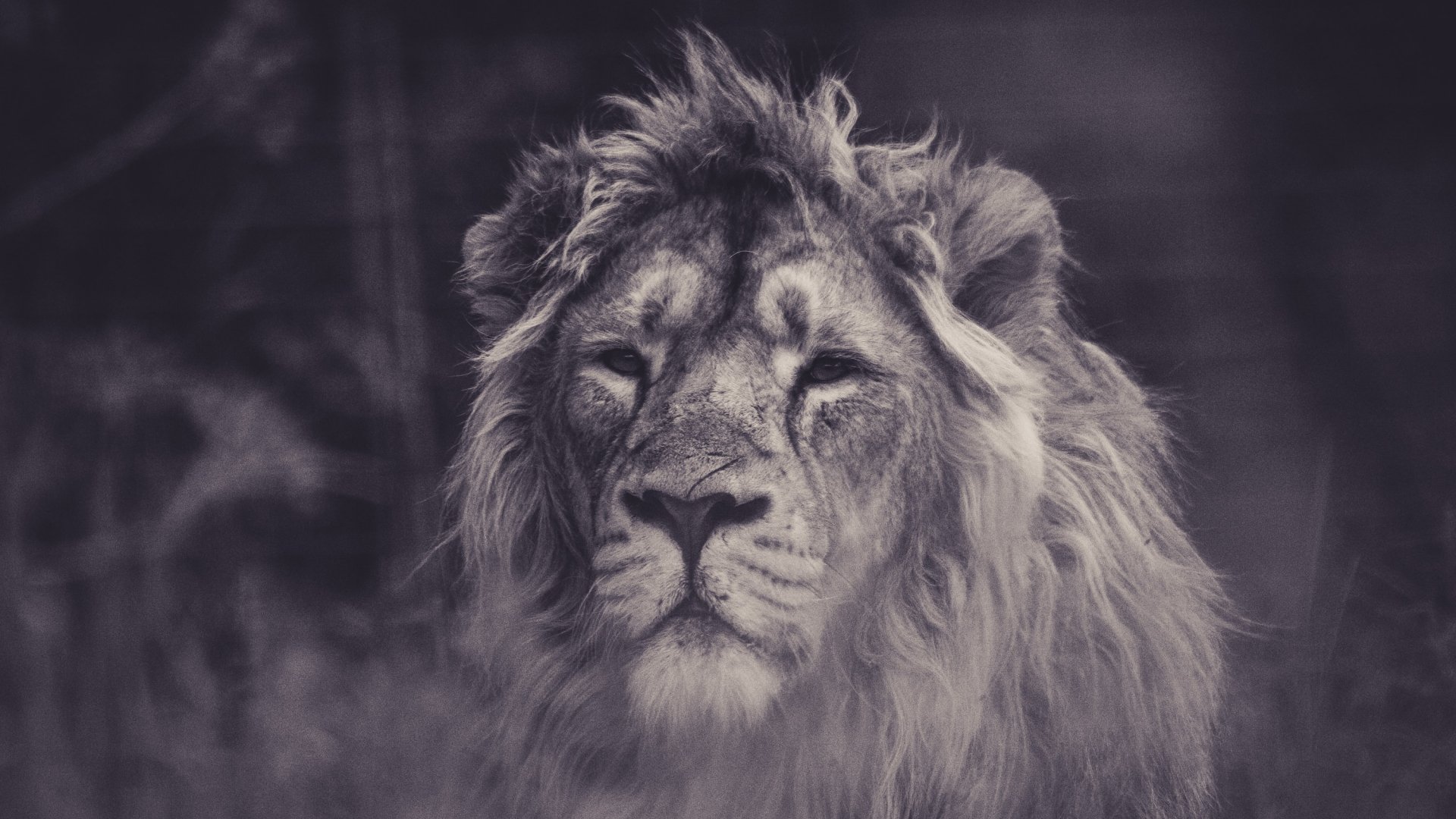 Обои: лев, грива, черное и белое - 1920x1080
