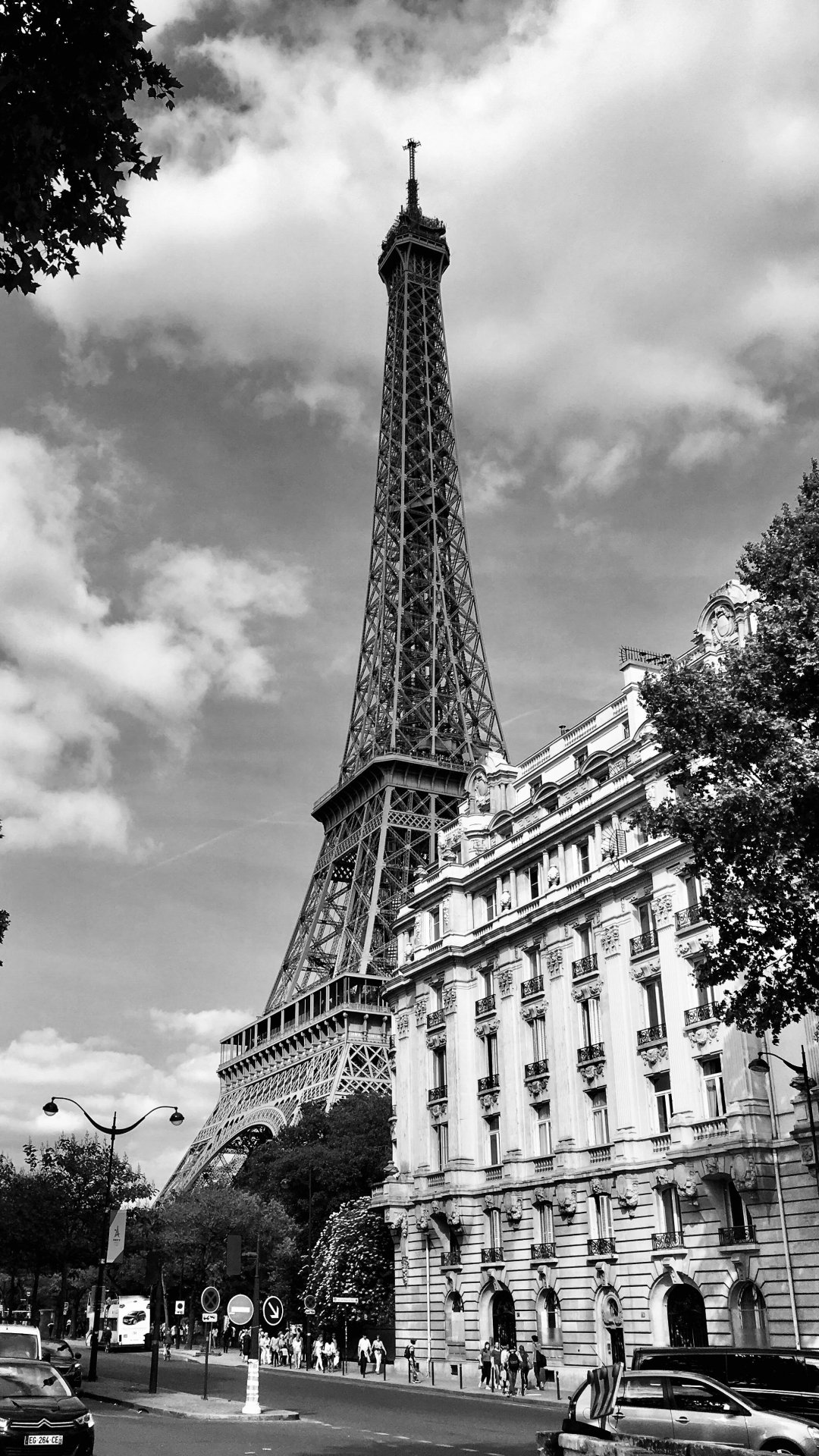 Обои: Эйфелева башня, черное и белое, Париж - 1080x1920