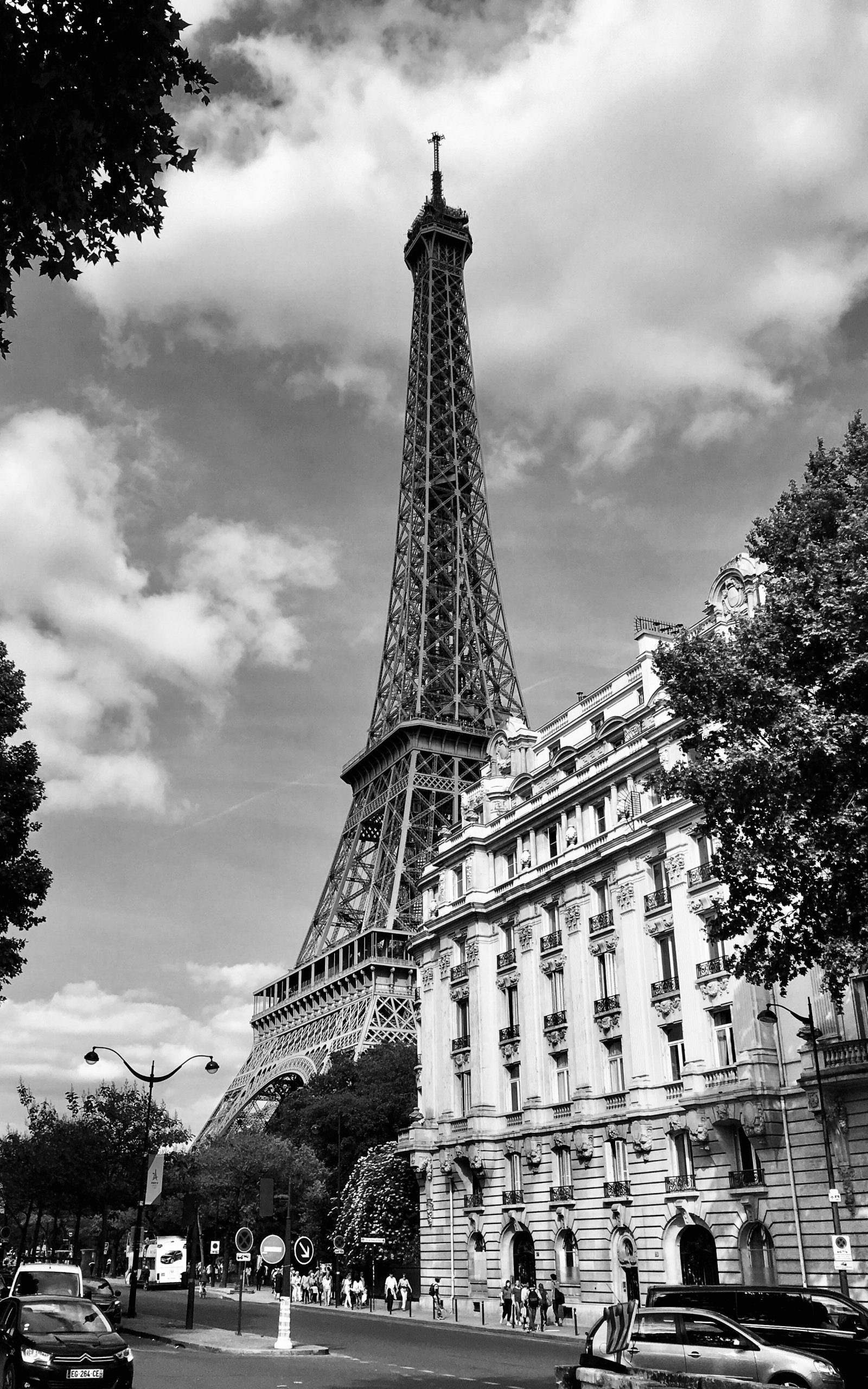 Обои: Эйфелева башня, черное и белое, Париж - 1600x2560