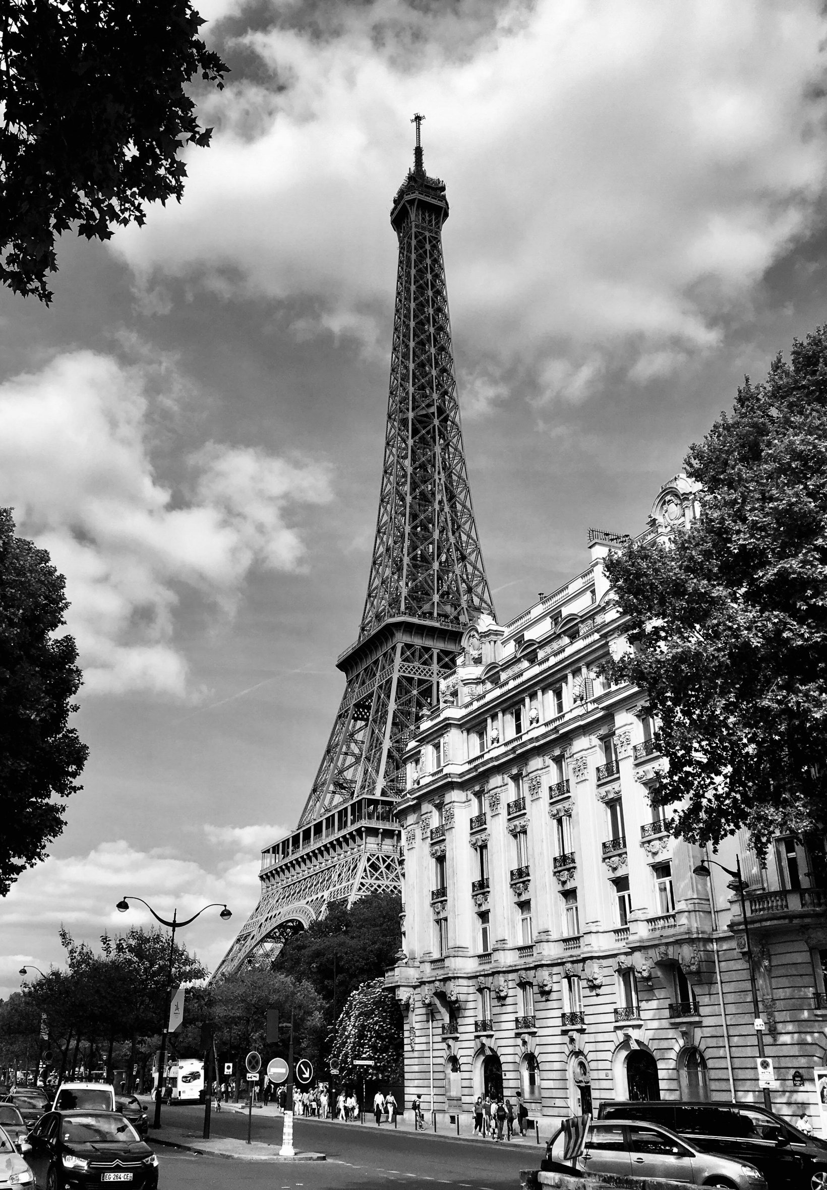 Обои: Эйфелева башня, черное и белое, Париж - 1640x2360