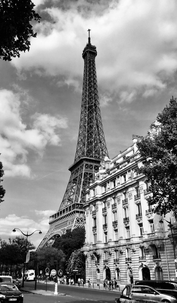 Обои: Эйфелева башня, черное и белое, Париж - 600x1024