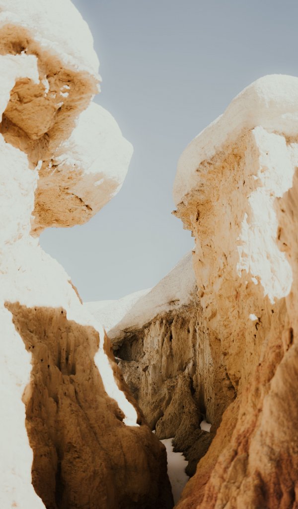 Обои: на открытом воздухе, утес, снег, природа - 600x1024