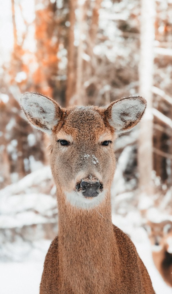 Обои: олень в природе, млекопитающее, зима - 600x1024