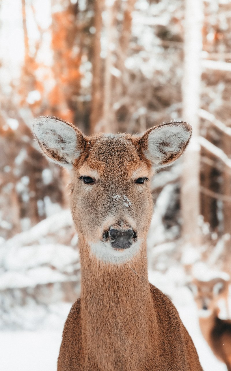 Обои: олень в природе, млекопитающее, зима - 800x1280