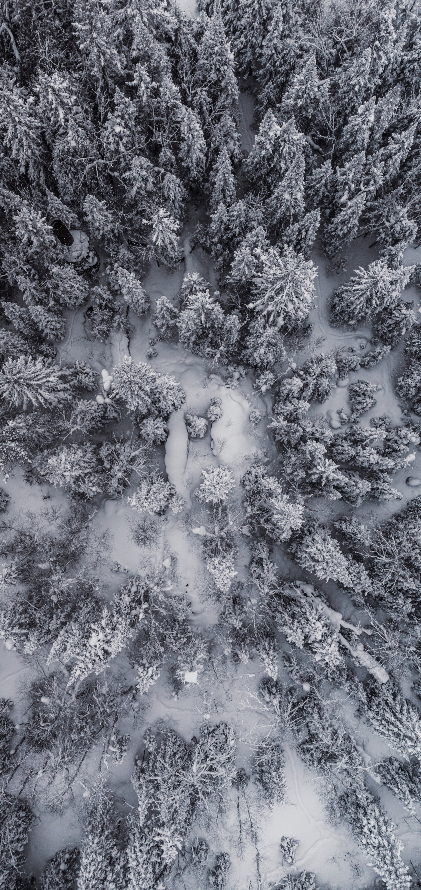 Обои: снегопад, фото с дрона, зима, деревья - 1440x3040
