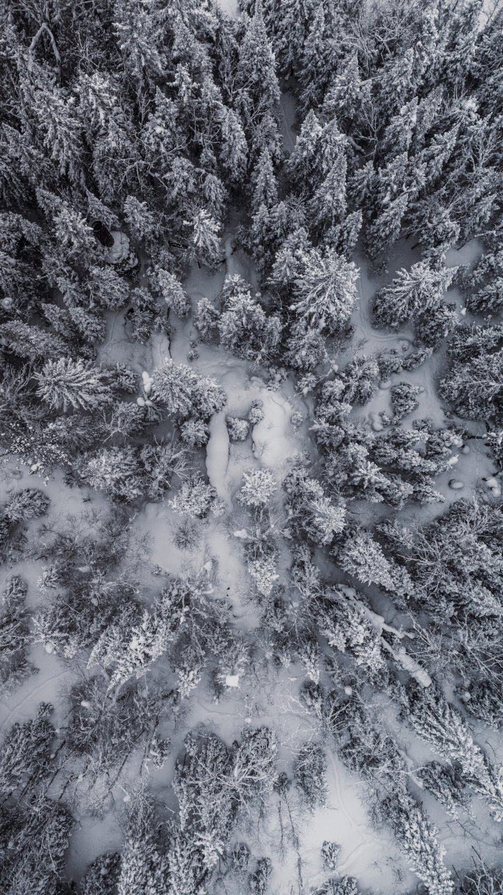 Обои: снегопад, фото с дрона, зима, деревья - 720x1280