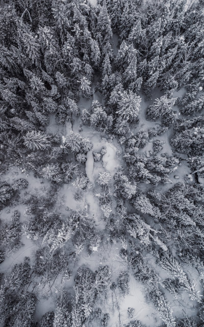 Обои: снегопад, фото с дрона, зима, деревья - 800x1280