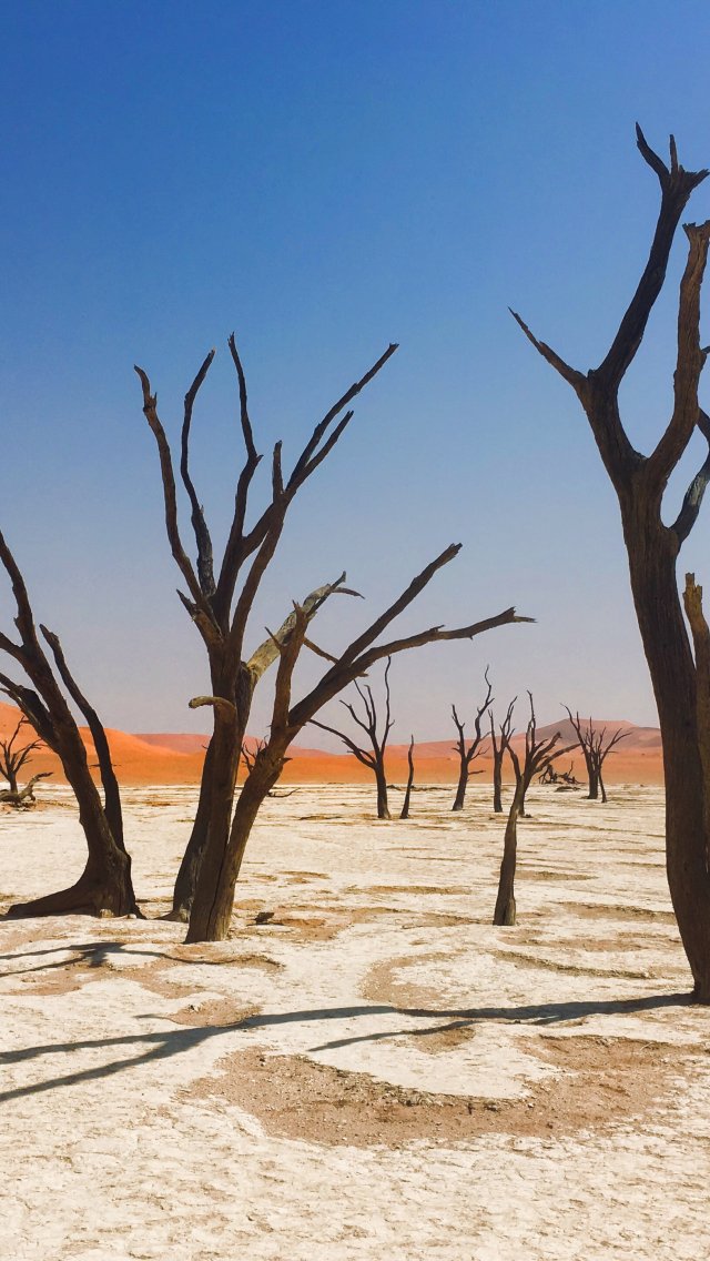 Обои: Соссусфлей, Намибия, мертвые деревья - 640x1136