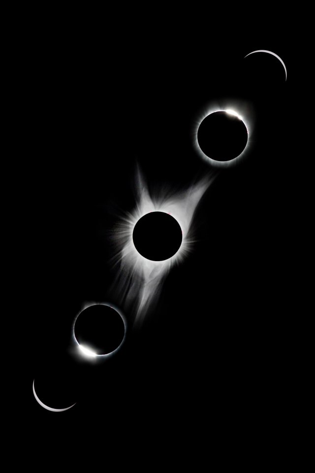 Обои: лунное затмение, черное и белое - 640x960